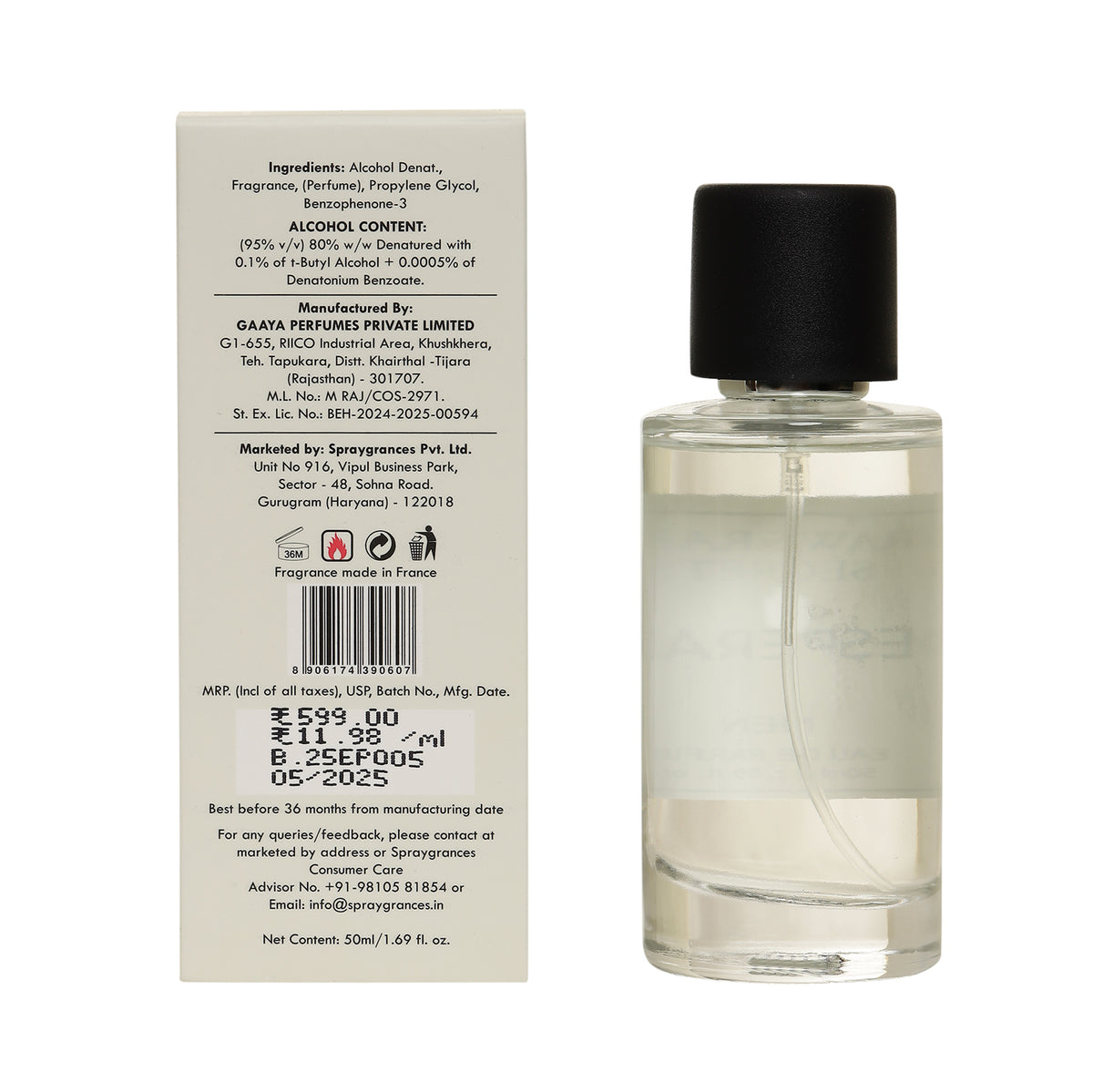 Alcohol (denatured), Fragrance (PARFUM), Aqua, BHT.